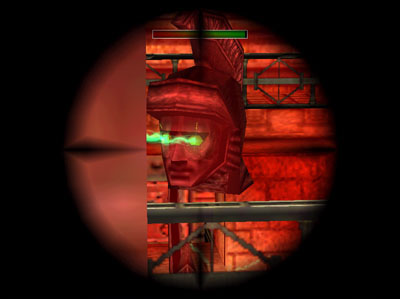 Use the revolver equipped with the laser sight to target the mechanical head's eyes.