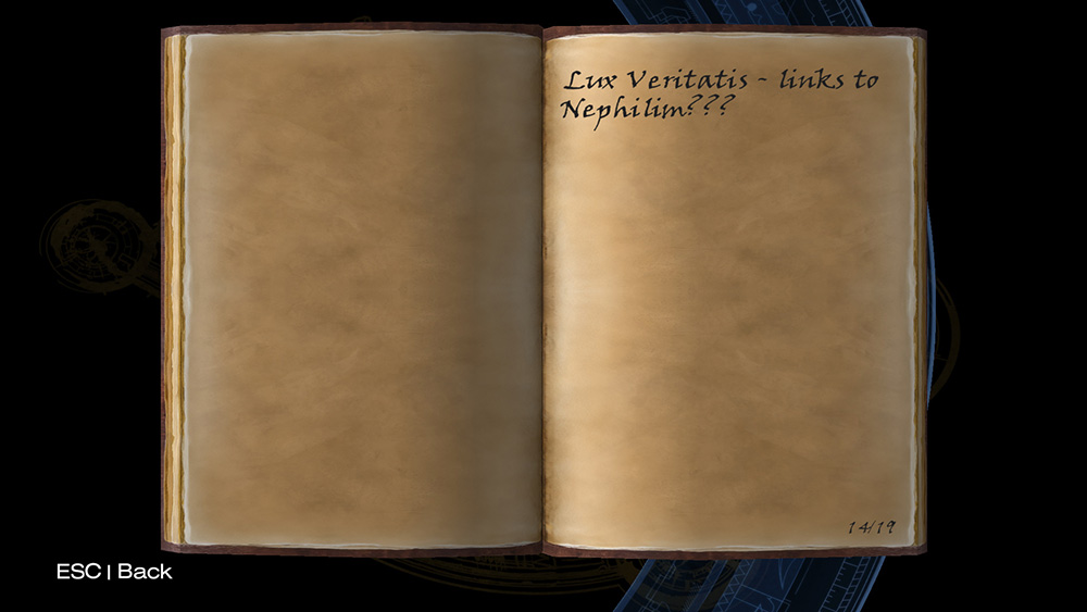 | 14 | Lux Veritatis - links to Nephilim??? | Margot Carvier's Apartment | screenshot | |