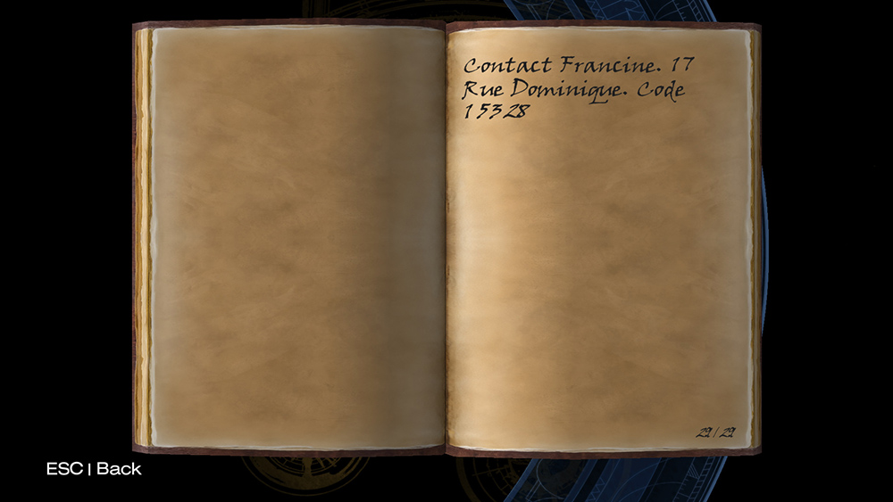 | 29 | Find the Doorman. (If you give the trinket box to Bernard) - OR - Contact Francine. 17 Rue Dominique. Code 15328 (If you give the trinket box to Pierre) | Parisian Ghetto | screenshot screenshot |